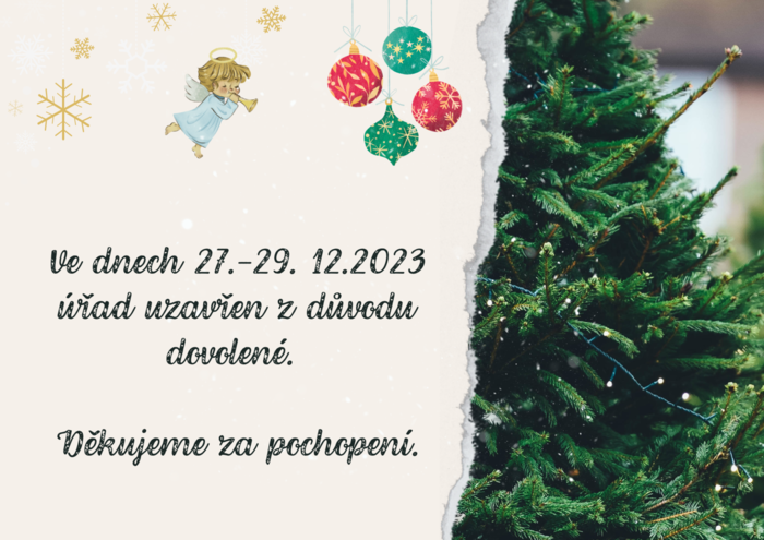 Ve dnech 27.-29.12.2023 obecní úřad uzavřen z důvodu dovolené.